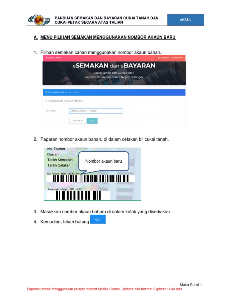 PANDUAN SEMAKAN DAN BAYARAN CUKAI TANAH DAN eHASIL Muka Surat 9 Paparan terbaik menggunakan pelayar internet Mozilla Firefox Chrome dan Internet Explorer 11 ke atas CUKAI.